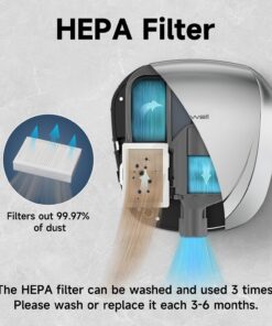 - HEPA Filter: This hand dryer is equipped with a HEPA filter to provide clean, warm air while also extending the lifespan of the motor and the device