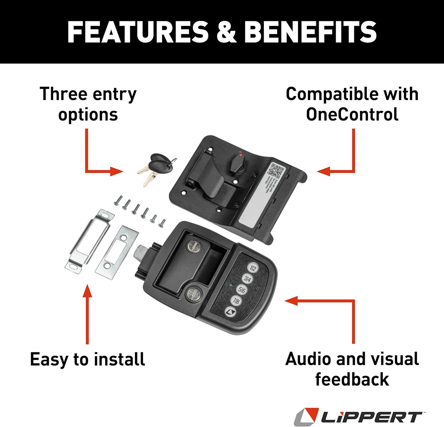 - SAFE & SECURE — With the Lippert keyless RV door lock, you can keep your family and your belongings safe while you’re asleep at night or when your coach is unattended