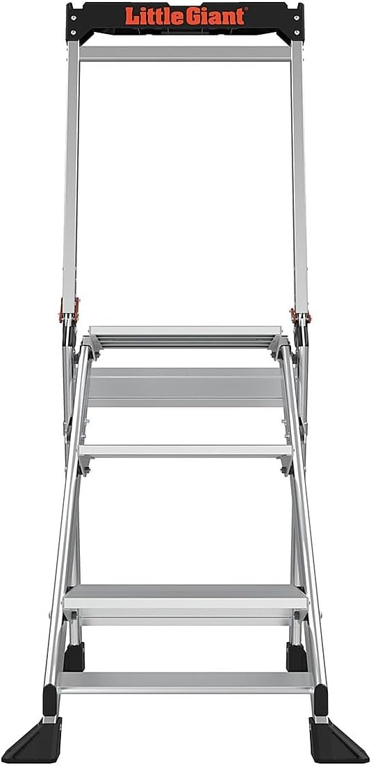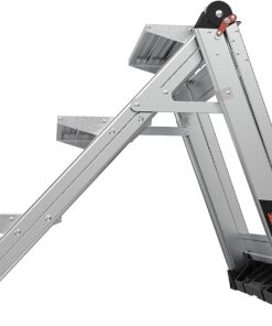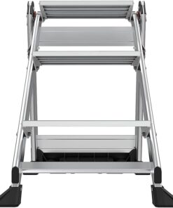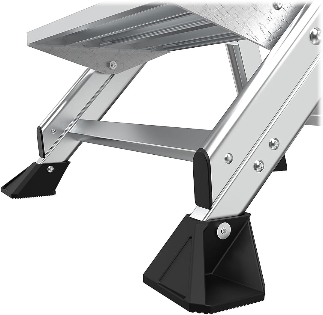 - Lightweight aluminum stepladder uses a non-slip staircase design for comfortable and sturdy use.