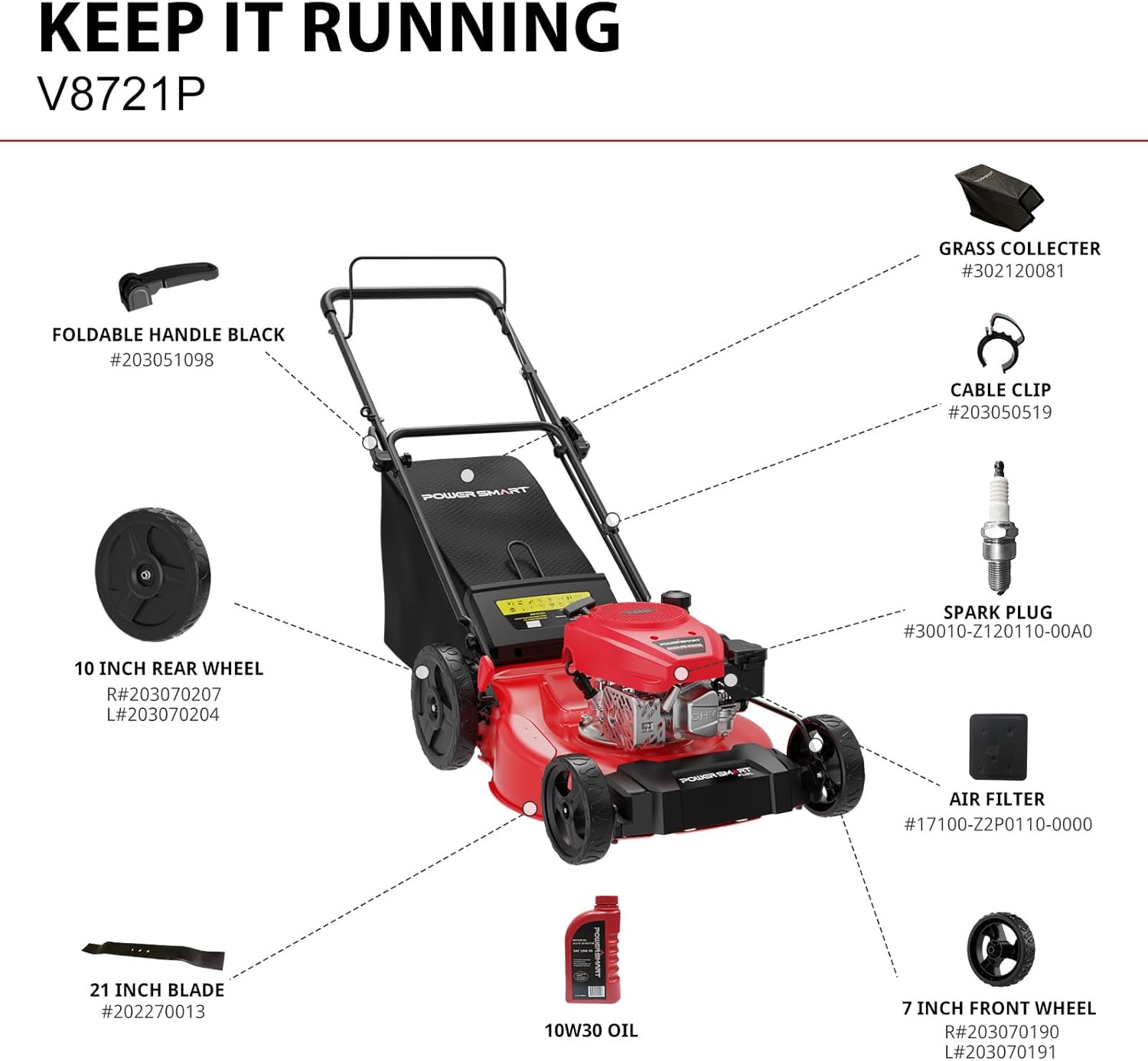 - 21″ Cutting Blade: The heavy-duty blade delivers better cutting effect, allowing you to mow more in less time.