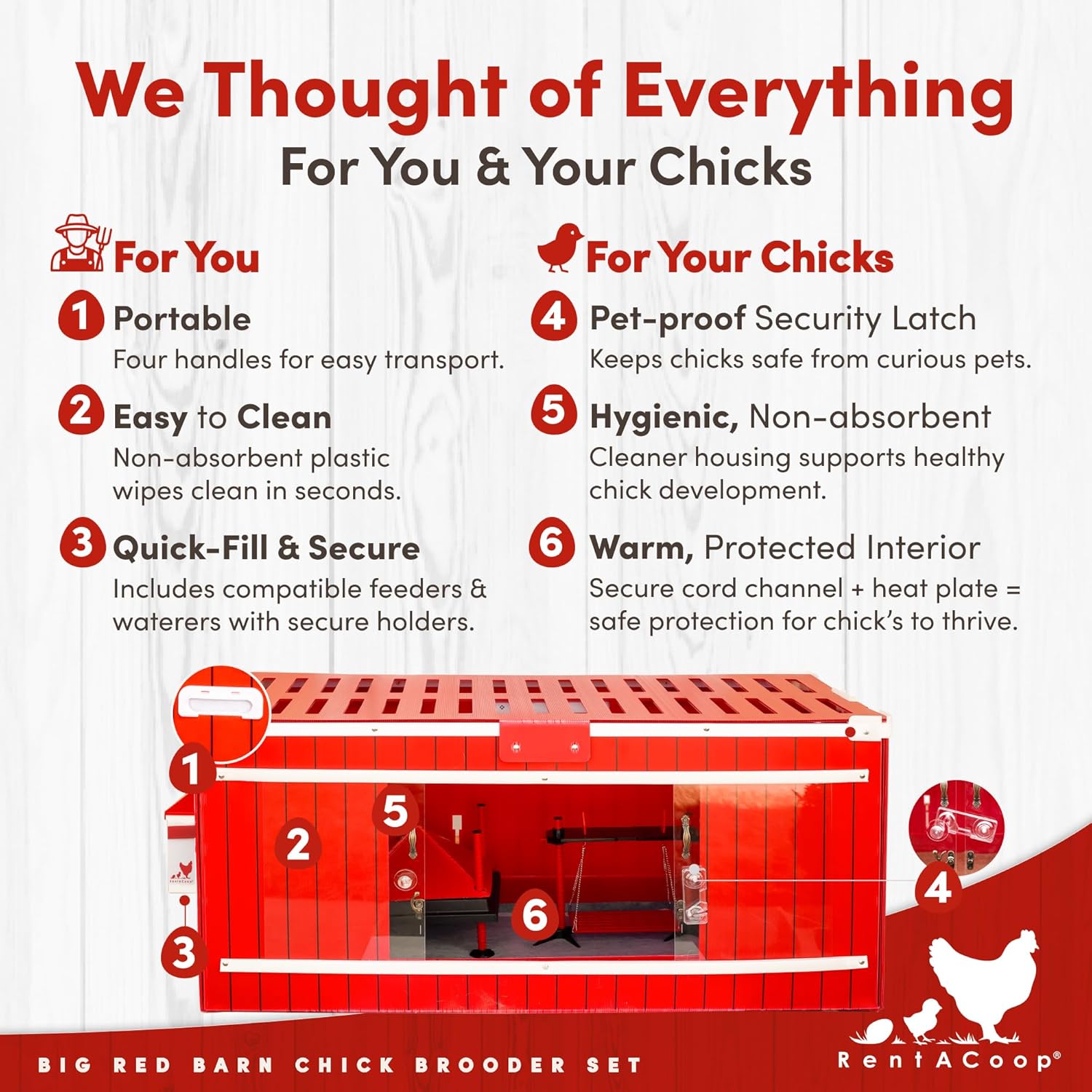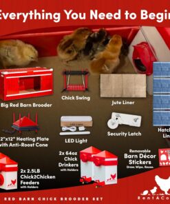 RentACoop Big Red Barn Chick Brooder Set with Heating Plate Feeder Waterer and Liners