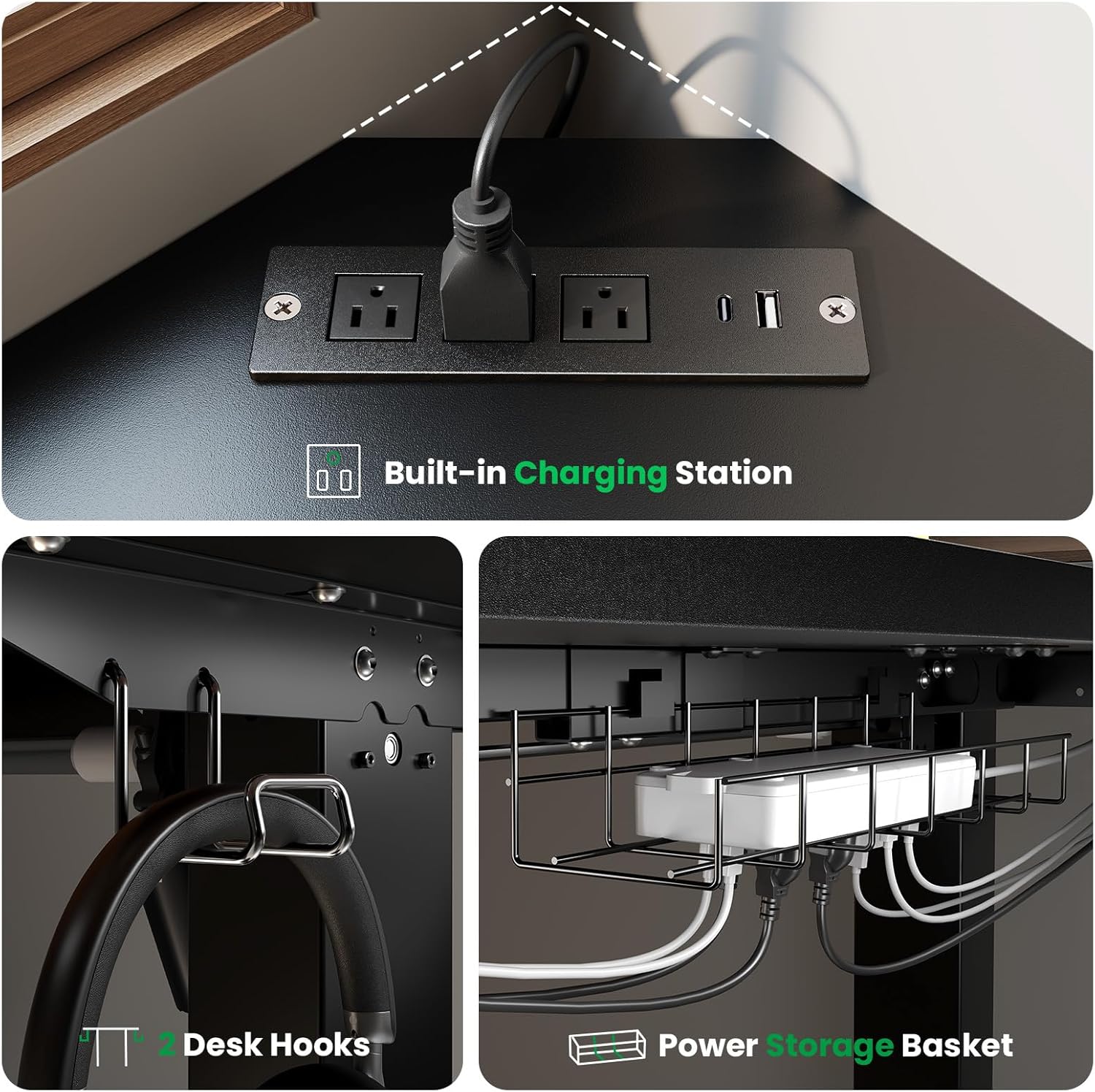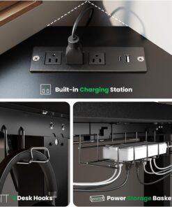 - 【Enjoy Easy and Convenient Charging】The L-shaped standing desktop features 3 AC outlets and dual USB fast-charging ports (Type-A/C) for all your devices. Built-in cable management with two headphone hooks keeps wires organized, maintaining a clean workspace effortlessly.