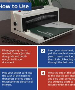 - EFFORTLESS USE – The electric coil inserter makes binding coil documents fast and simple. Operate the manual punch with a full handlebar designed for left-handed, right-handed, or two-handed operation.