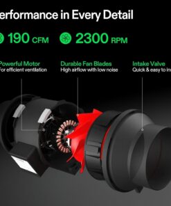 - Efficient Ventilation Fan: This R Series inline fan runs at a speed of 2300 RPM, and moves up to 195 CFM of fresh air, helping you maintain a stable and healthy grow environment; A less than 30 dB noise level will not disturb your work