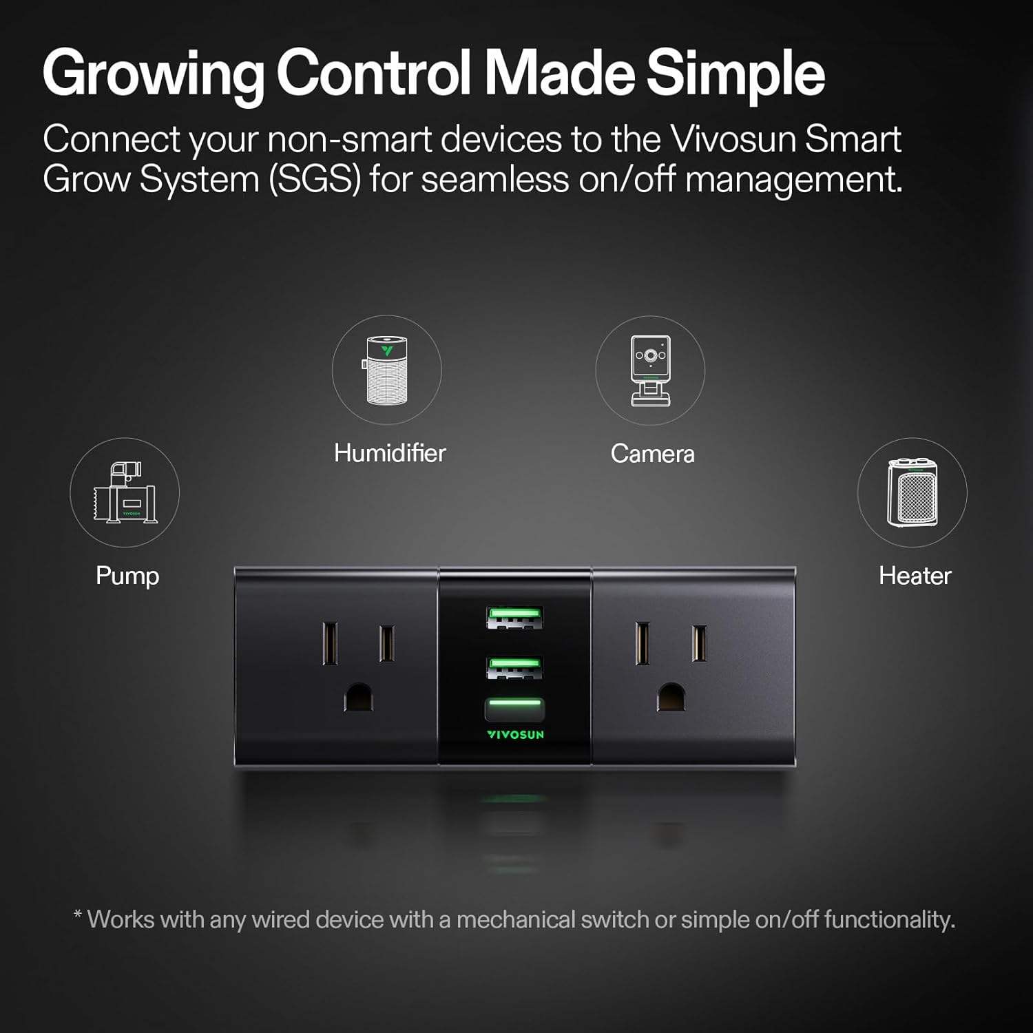- Easy Control with GrowHub A22: Integrate your grow devices with the WiFi-enabled GrowHub A22 for seamless control; Connect non-smart equipment to the Vivosun Smart Grow System for smart scheduling, temperature, and on/off control; Monitor and adjust your tent environment from anywhere with the app—simple, precise, and stress-free